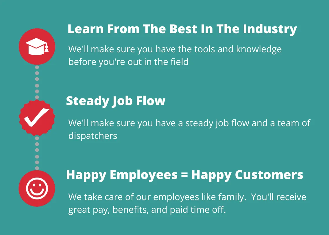 We take care of our team. Our Average Employee Stays for longer than 3+ years.